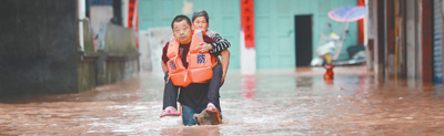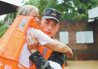廣東清遠市受連續(xù)強降雨影響,部分區(qū)域受災嚴重。圖為源潭鎮(zhèn)蓮安村,武警官兵在轉(zhuǎn)移被困群眾。