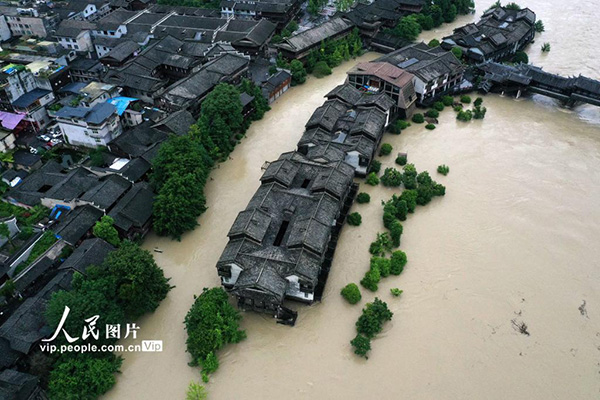 6月28日,洪水危及重慶市黔江區(qū)濯水古鎮(zhèn)民居