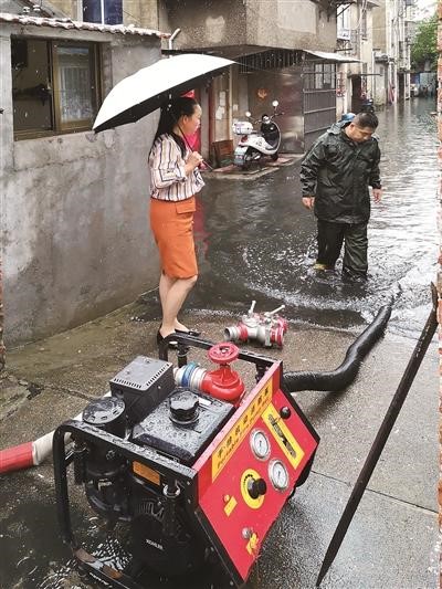6月27日4時(shí)起,江蘇泰州市中南部地區(qū)遭受暴雨襲擊,市區(qū)各地出現(xiàn)不同程度的積水現(xiàn)象。9時(shí)許,泰州市海陵區(qū)城中街道泰山社區(qū)排澇人員全部到位,對(duì)轄區(qū)內(nèi)低洼小區(qū)原五金公司宿舍、泰山路35號(hào)樓等幾幢居民樓進(jìn)行抽水。由于積水嚴(yán)重,社區(qū)向街道和住建部門匯報(bào)了排澇情況。隨后,區(qū)住建局派泵增援,形成大泵外圍抽、小泵里面抽,很快將居民家中的積水排走。