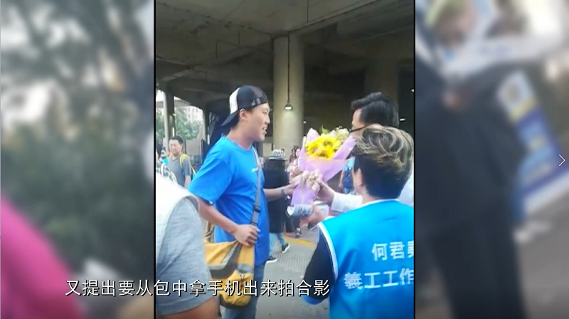 這名男子先是送上鮮花,靠近攀談,假意表示自己是支持者,又提出要從包中拿手機出來拍合影。隨即,他掏出尖刀,猛地刺出。