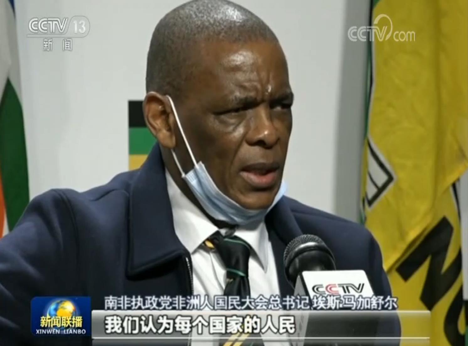 南非執(zhí)政黨非洲人國民大會(huì)總書記 埃斯·馬加舒爾:非洲人國民大會(huì)尊重所有國家的主權(quán)。我們認(rèn)為每個(gè)國家的人民,都有權(quán)決定自己的命運(yùn),塑造自己的國家以及制定自己的法律,中國當(dāng)然也有權(quán)這樣做。