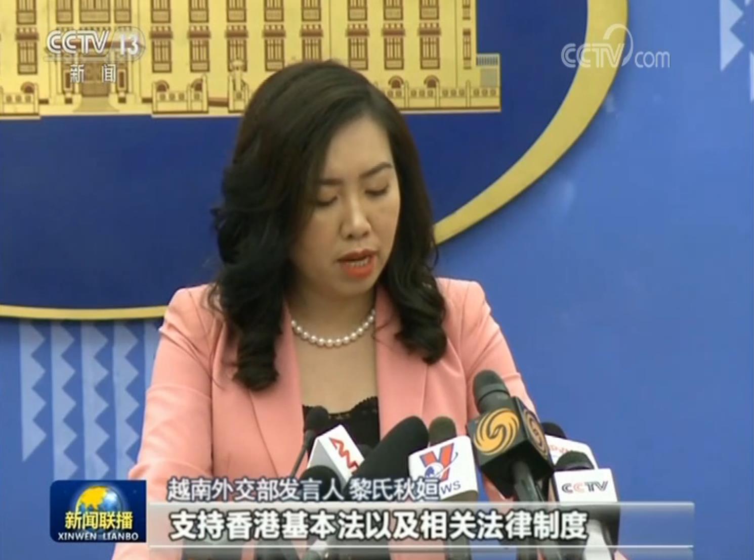 越南外交部發(fā)言人 黎氏秋姮:越南尊重與支持中國“一國兩制”方針,支持香港基本法以及相關(guān)法律制度。香港事務(wù)純屬中國內(nèi)政,希望香港能夠保持穩(wěn)定繁榮發(fā)展。