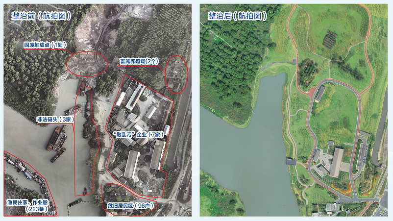 薛家洼生態(tài)園地處長江東岸,占地986畝,曾經生態(tài)環(huán)境問題非常突出,原有非法碼頭3家,散亂污企業(yè)7家,固廢堆場1處,規(guī)模化畜禽養(yǎng)殖場2個,危舊民居96戶,?繚O民作業(yè)船、住家船223條!扒缣煲簧砘,雨天一身泥”,這是曾經薛家洼的真實寫照。
