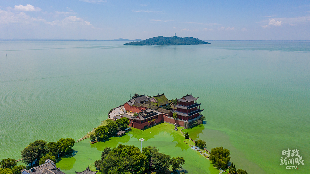 △7月份巢湖遭遇特大暴雨,位于北岸的中廟寺下方基座被淹,俯瞰如“湖中船”。