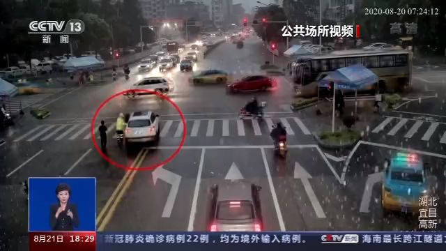昨天(20日)早上,湖北宜昌下起大雨,濕滑的道路上,一輛私家車卻開啟了“無人駕駛”模式。路上車多人多,眼看險情就要發(fā)生,一個勇敢的身影突然出現(xiàn)。