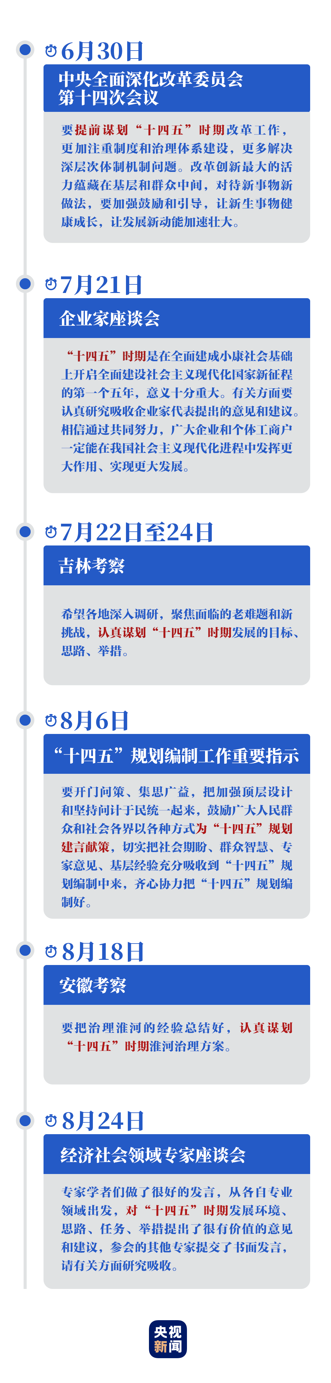 今年以來,習近平總書記多次主持召開重要會議、赴地方考察,就“十四五”開門問策,聽取大家對當前經(jīng)濟形勢、“十四五”規(guī)劃的意見和建議,強調(diào)要集思廣益、齊心協(xié)力把“十四五”規(guī)劃編制好。