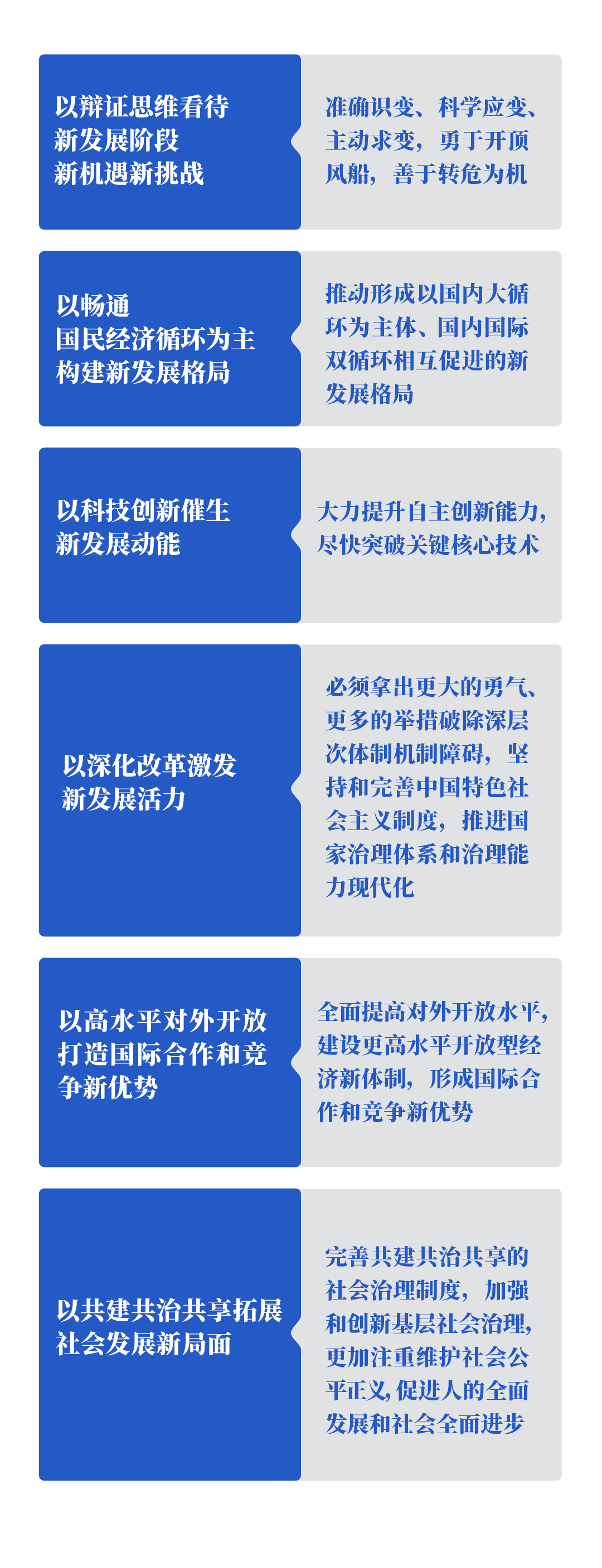 在經(jīng)濟社會領(lǐng)域?qū)<易剷希暯綇狞h和國家事業(yè)發(fā)展的戰(zhàn)略全局出發(fā),從新發(fā)展階段、新發(fā)展格局、新發(fā)展動能、新發(fā)展活力、國際合作和競爭新優(yōu)勢、社會發(fā)展新局面等方面提出要求。這六點要求為正確認識和把握中長期經(jīng)濟社會發(fā)展重大問題指明了方向,是“十四五”規(guī)劃編制和未來經(jīng)濟社會發(fā)展的重要遵循。