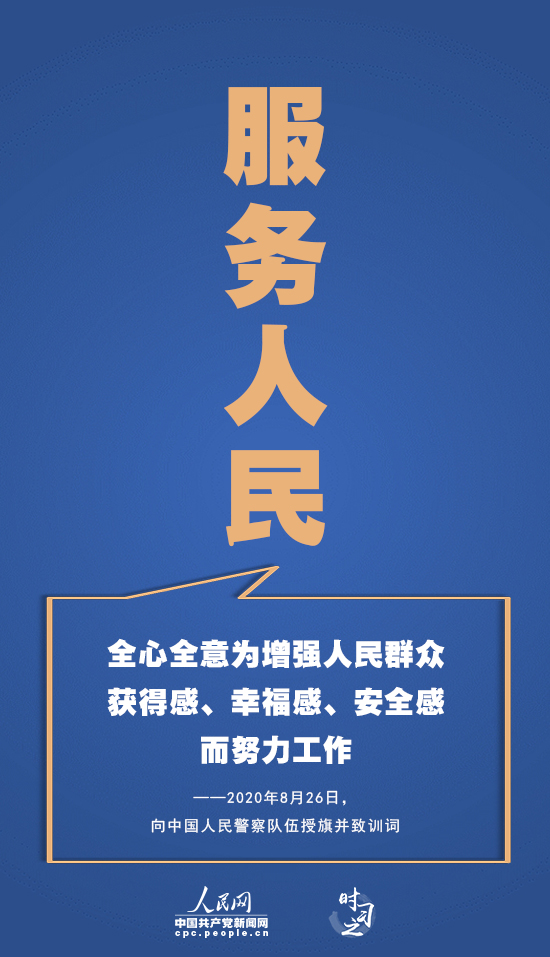服務(wù)人民——“為什么人的問題,是一個根本的問題,原則的問題!惫矙C(jī)關(guān)前面的“人民”二字,是立警之本。在今年上半年的疫情防控和維護(hù)安全穩(wěn)定工作中,100多名公安警察因公殉職,他們共同用生命詮釋了何謂“人民警察”。長期以來,全國公安機(jī)關(guān)和廣大公安民警牢記宗旨、忠誠使命,圍繞中心、服務(wù)大局,頑強(qiáng)拼搏、無私奉獻(xiàn),為國家安全、社會穩(wěn)定、人民幸福作出了重要貢獻(xiàn)。