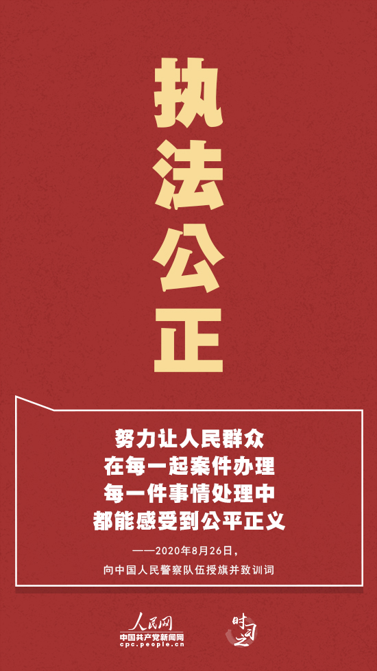 執(zhí)法公正——“公平正義是政法工作的生命線!惫矆(zhí)法工作量大面廣,與老百姓生活密切相關(guān)。新時代,執(zhí)法公正上升到新的高度,凝聚著習(xí)近平總書記對廣大公安民警的殷切期望。習(xí)近平強(qiáng)調(diào),要抓住關(guān)鍵環(huán)節(jié),完善執(zhí)法權(quán)力運(yùn)行機(jī)制和管理監(jiān)督制約體系,努力讓人民群眾在每一起案件辦理、每一件事情處理中都能感受到公平正義。