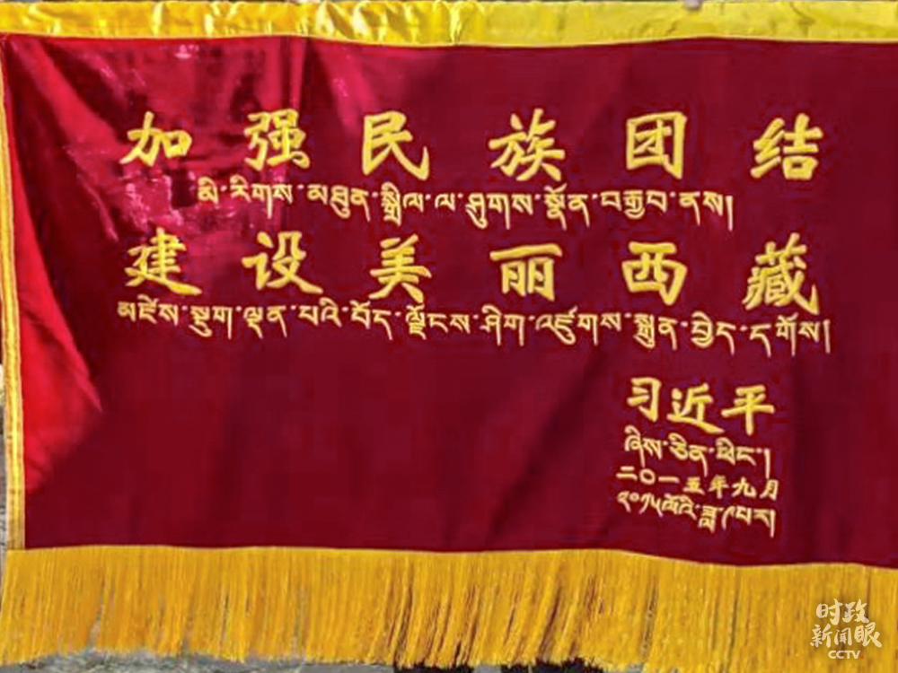 △2015年,在西藏自治區(qū)成立50周年慶祝大會上,西藏300多萬各族兒女收到習近平題詞的“加強民族團結 建設美麗西藏”賀匾。