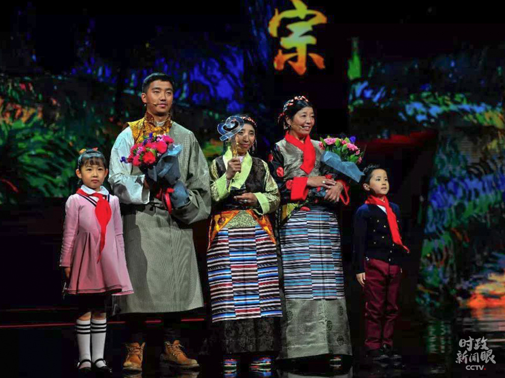 △西藏玉麥鄉(xiāng)地處中國西南邊陲,卓嘎(中)、央宗(右二)姐妹和父親桑杰曲巴在這里放牧守邊34年?倳浽匦琶銊钏齻儭袄^續(xù)傳承愛國守邊的精神”。這是兩姐妹一起當選感動中國2017年度人物。
