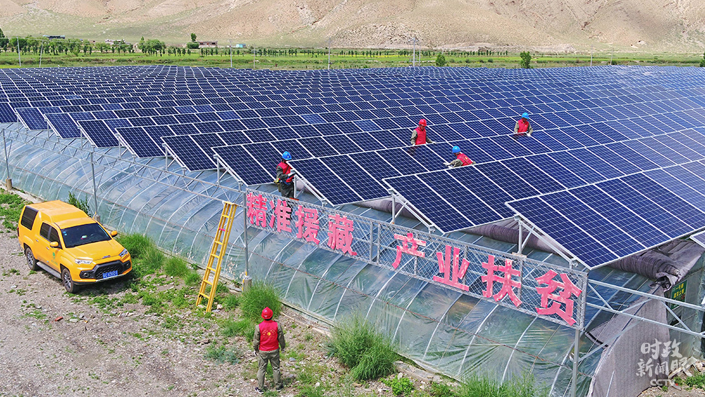 △湖北襄陽某供電公司援藏幫扶工作人員檢修光伏發(fā)電設備,解決當?shù)仞B(yǎng)殖戶和種植戶用電需求。