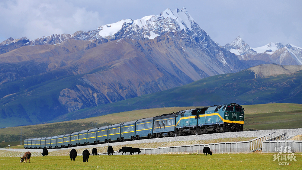 △青藏鐵路列車運行在念青唐古拉山腳下。