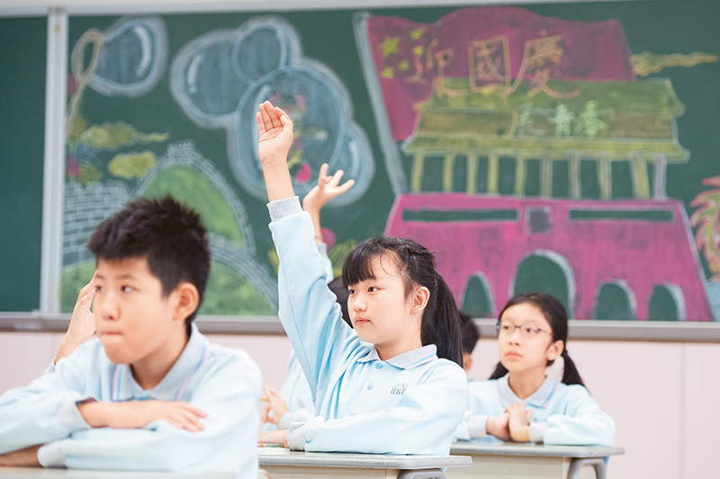 澳門中小學學生使用的教材《品德與公民》中有豐富的關于國情、國旗、國歌的內容,學生們可以從中學到很多關于祖國的知識,培養(yǎng)對祖國和澳門的感情。圖為2019年11月25日,澳門濠江中學附屬英才學校的學生在課堂上舉手回答老師提問。 新華社記者 張金加/攝