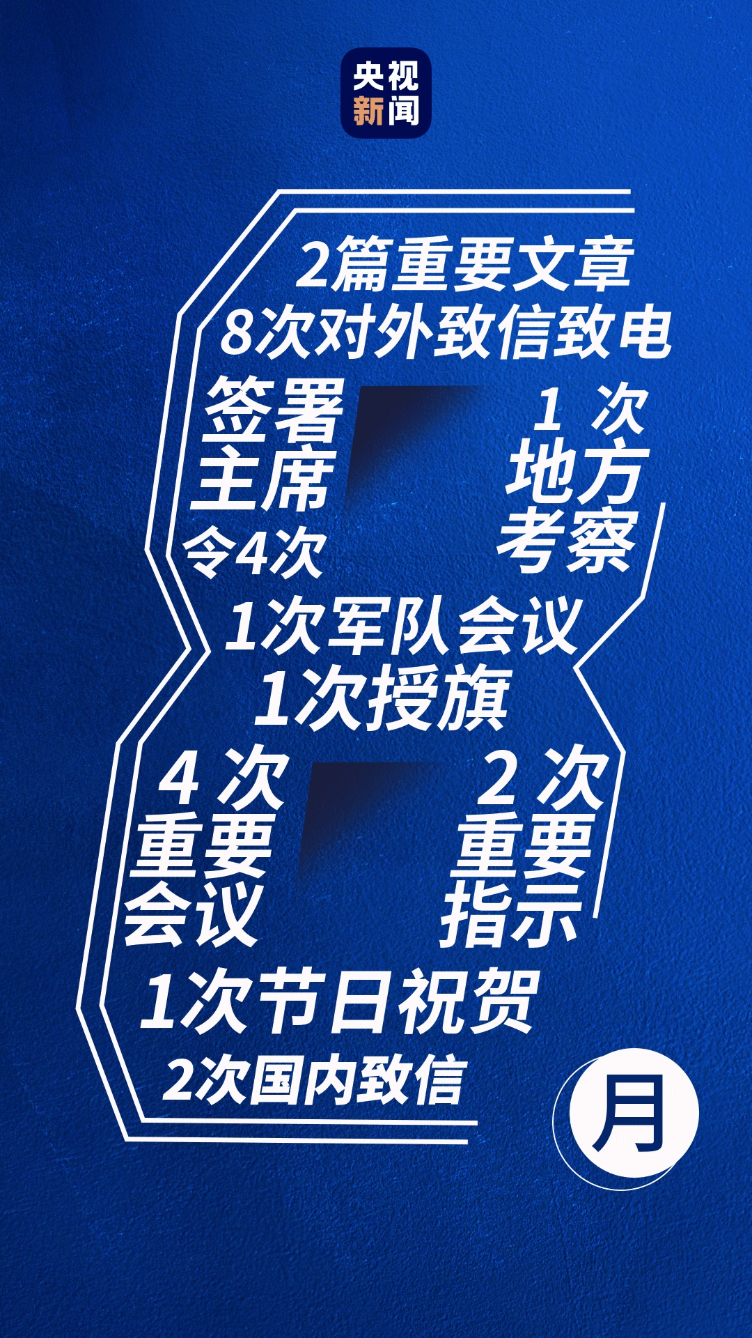 赴安徽考察、聽取軍隊匯報、主持召開座談會、簽署主席令、授旗并致訓詞、給廣大青年致信……一項項重大活動,彰顯著習近平總書記對人民的深切關(guān)懷、對英雄的深情禮贊、對國家安全的高度重視、對經(jīng)濟社會發(fā)展的長遠謀劃。