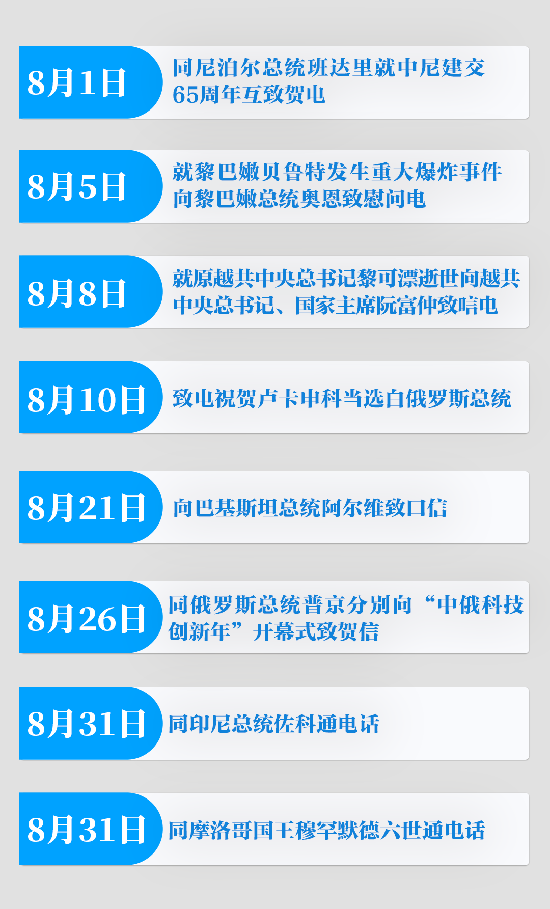 這個八月,國內(nèi)疫情防控局勢平穩(wěn),經(jīng)濟運行基本恢復。全國各地各部門不斷乘勢而上,鞏固擴大疫情防控和經(jīng)濟恢復成果,努力完成全年目標任務(wù)。