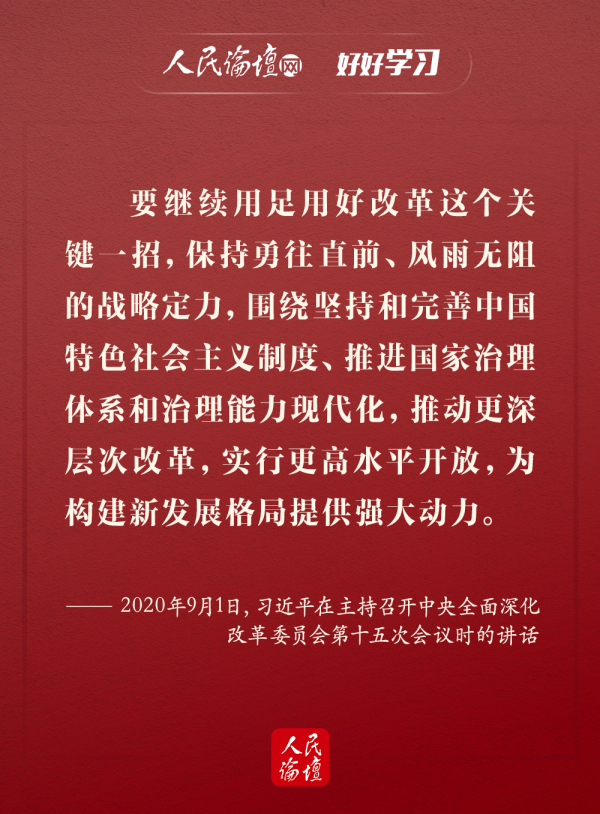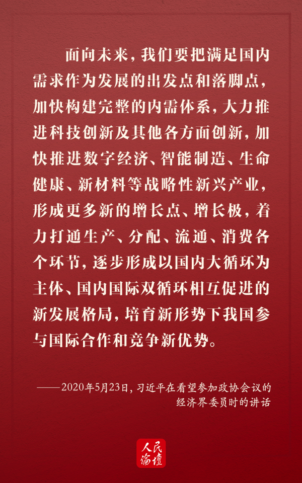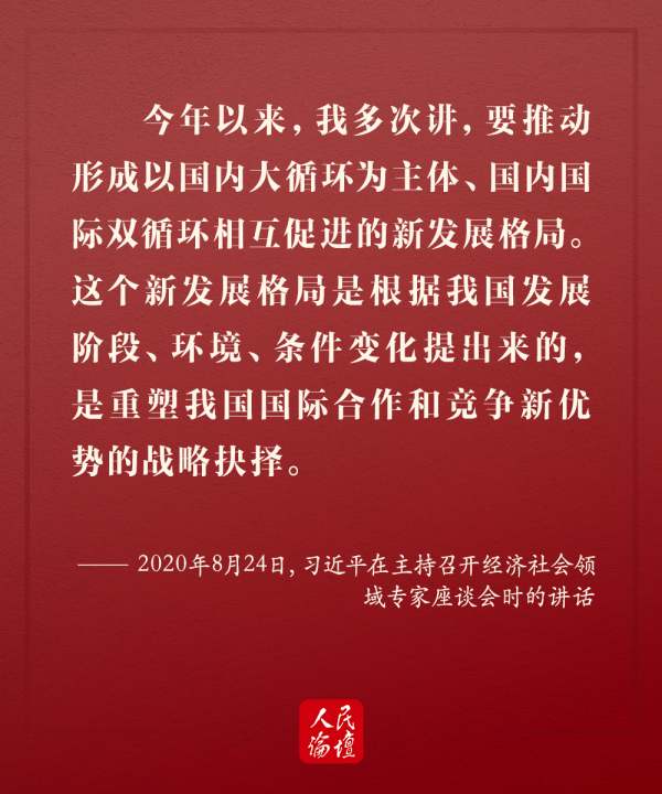 9月1日,習(xí)近平總書記在中央全面深化改革委員會(huì)第十五次會(huì)議上強(qiáng)調(diào),加快形成以國內(nèi)大循環(huán)為主體、國內(nèi)國際雙循環(huán)相互促進(jìn)的新發(fā)展格局,是根據(jù)我國發(fā)展階段、環(huán)境、條件變化作出的戰(zhàn)略決策,是事關(guān)全局的系統(tǒng)性深層次變革。今年5月以來,習(xí)近平總書記多次深入地方考察調(diào)研、主持召開重要會(huì)議,多次強(qiáng)調(diào)在當(dāng)前形勢(shì)下構(gòu)建新發(fā)展格局的重要性,就形成新發(fā)展格局作出重大戰(zhàn)略部署。今天,人民論壇網(wǎng)和您一起學(xué)習(xí)。