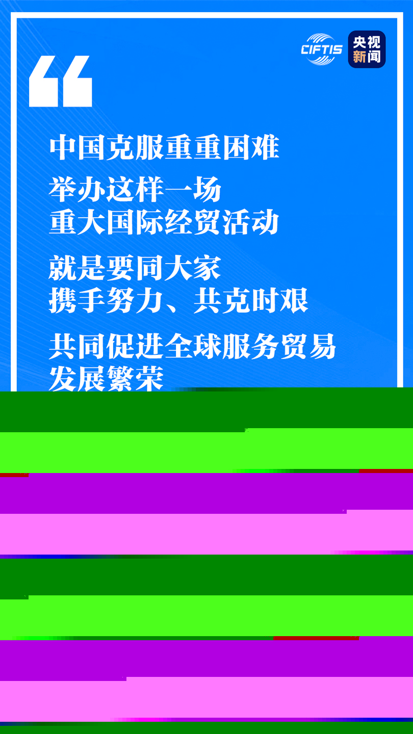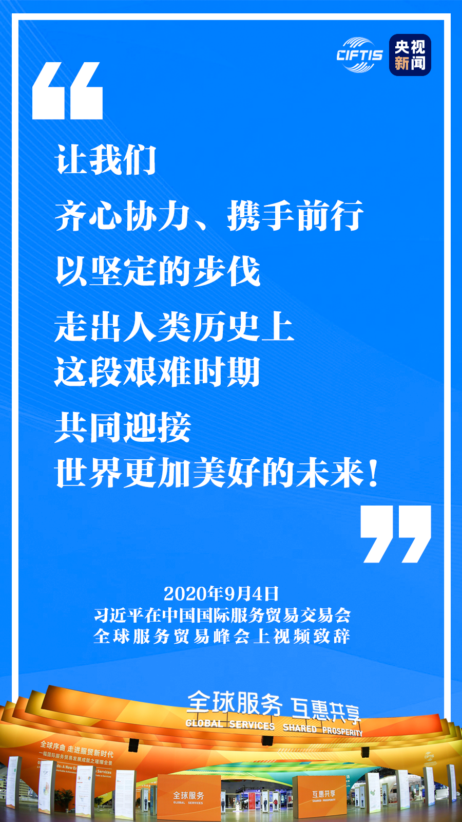 中國克服重重困難,舉辦這樣一場重大國際經(jīng)貿(mào)活動,就是要同大家攜手努力、共克時艱,共同促進(jìn)全球服務(wù)貿(mào)易發(fā)展繁榮,推動世界經(jīng)濟盡快復(fù)蘇。