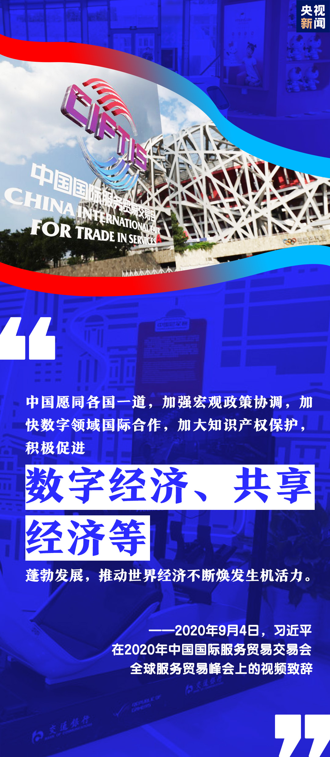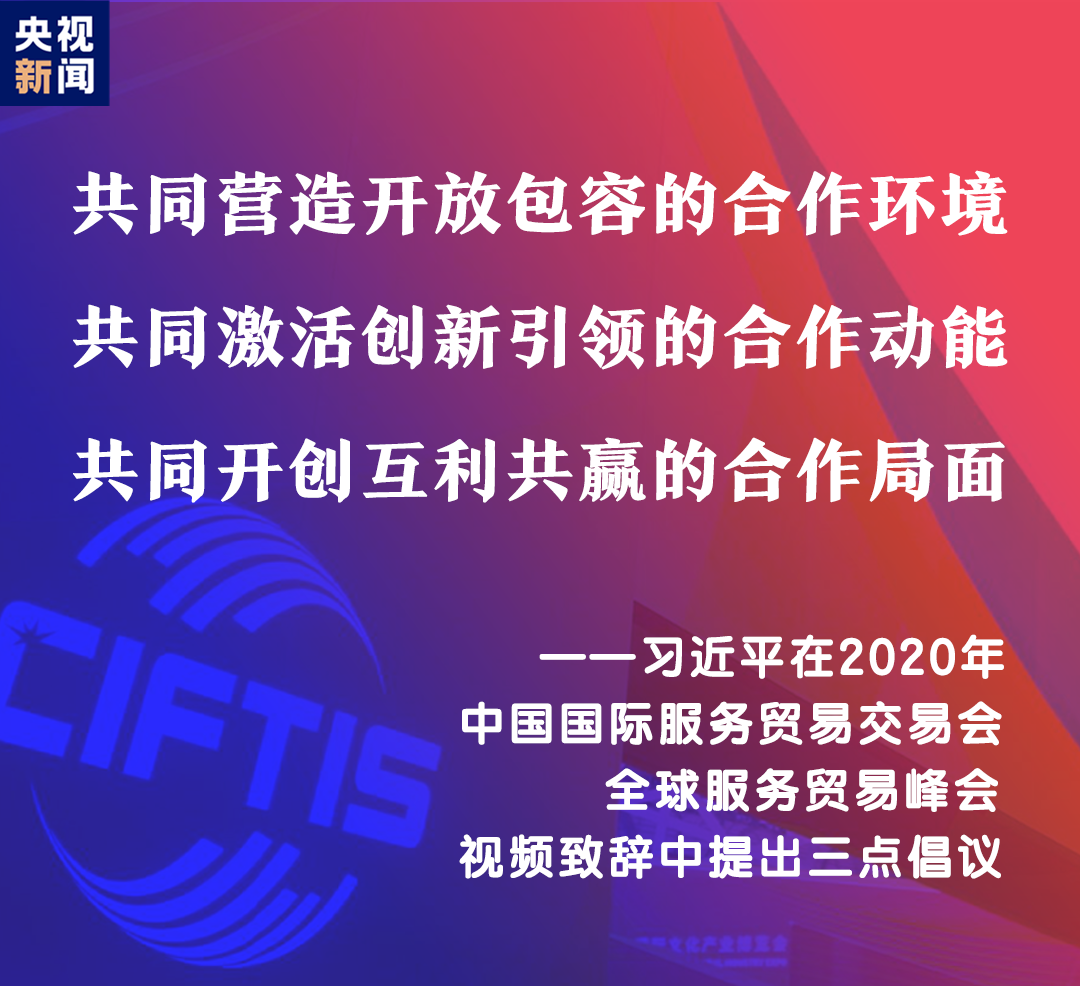 9月4日,2020年中國國際服務(wù)貿(mào)易交易會全球服務(wù)貿(mào)易峰會在北京開幕。習近平主席通過視頻方式在峰會上致辭。