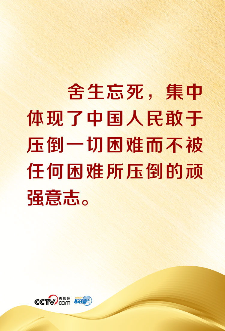 “在這場(chǎng)同嚴(yán)重疫情的殊死較量中,中國(guó)人民和中華民族以敢于斗爭(zhēng)、敢于勝利的大無(wú)畏氣概,鑄就了生命至上、舉國(guó)同心、舍生忘死、尊重科學(xué)、命運(yùn)與共的偉大抗疫精神!笨倳(shū)記還在講話中特別概括、闡釋了偉大抗疫精神,并深刻指出,偉大抗疫精神,同中華民族長(zhǎng)期形成的特質(zhì)稟賦和文化基因一脈相承,是愛(ài)國(guó)主義、集體主義、社會(huì)主義精神的傳承和發(fā)展,是中國(guó)精神的生動(dòng)詮釋?zhuān)S富了民族精神和時(shí)代精神的內(nèi)涵。央視網(wǎng)《聯(lián)播+》欄目特對(duì)相關(guān)內(nèi)容進(jìn)行梳理,與您共同在偉大精神中感受偉大的力量!