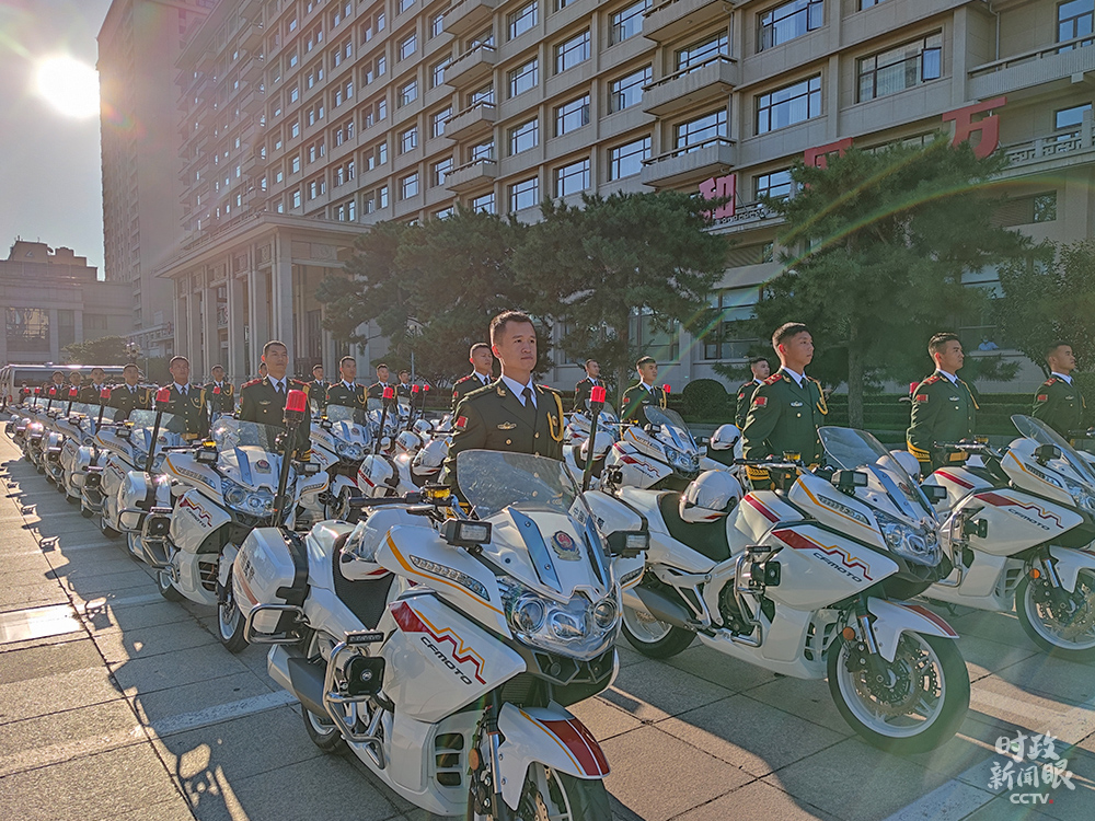 △表彰大會前,國賓護衛(wèi)隊準備從住地出發(fā)。(總臺央視記者胡瑋拍攝)