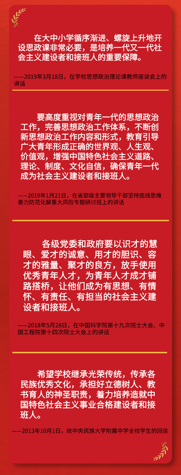 培養(yǎng)社會(huì)主義建設(shè)者和接班人 習(xí)近平心系青年未來(lái)