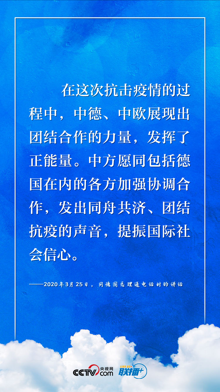 新冠肺炎疫情暴發(fā)以來(lái),中國(guó)和德國(guó)、歐盟相互支持、相互幫助。習(xí)近平主席多次與德歐領(lǐng)導(dǎo)人開(kāi)展“云外交”,闡明加強(qiáng)合作的重要性。