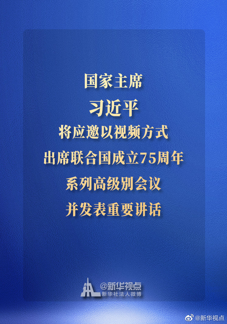 習近平將應邀以視頻方式出席聯(lián)合國成立75周年系列高級別會議并發(fā)表重要講話