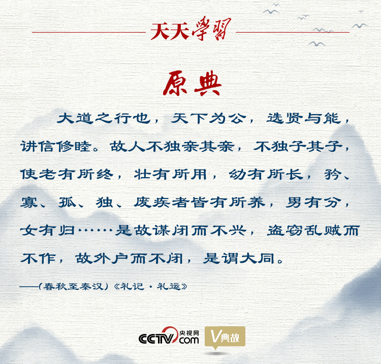 “大道之行也,天下為公!背鲎匀寮医(jīng)典《禮記·禮運》,闡釋了儒家學(xué)派的政治理想及其對未來社會的憧憬。