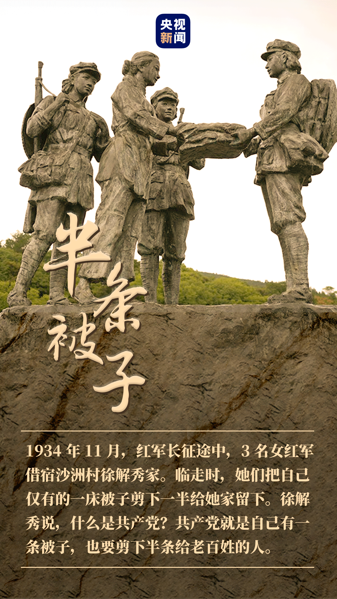 在“半條被子的溫暖”專題陳列館,習(xí)近平指出,“半條被子的故事”體現(xiàn)了中國共產(chǎn)黨人的初心和本色,當年紅軍在缺吃少穿、生死攸關(guān)的時候,還想著老百姓的冷暖,真是一枝一葉總關(guān)情!