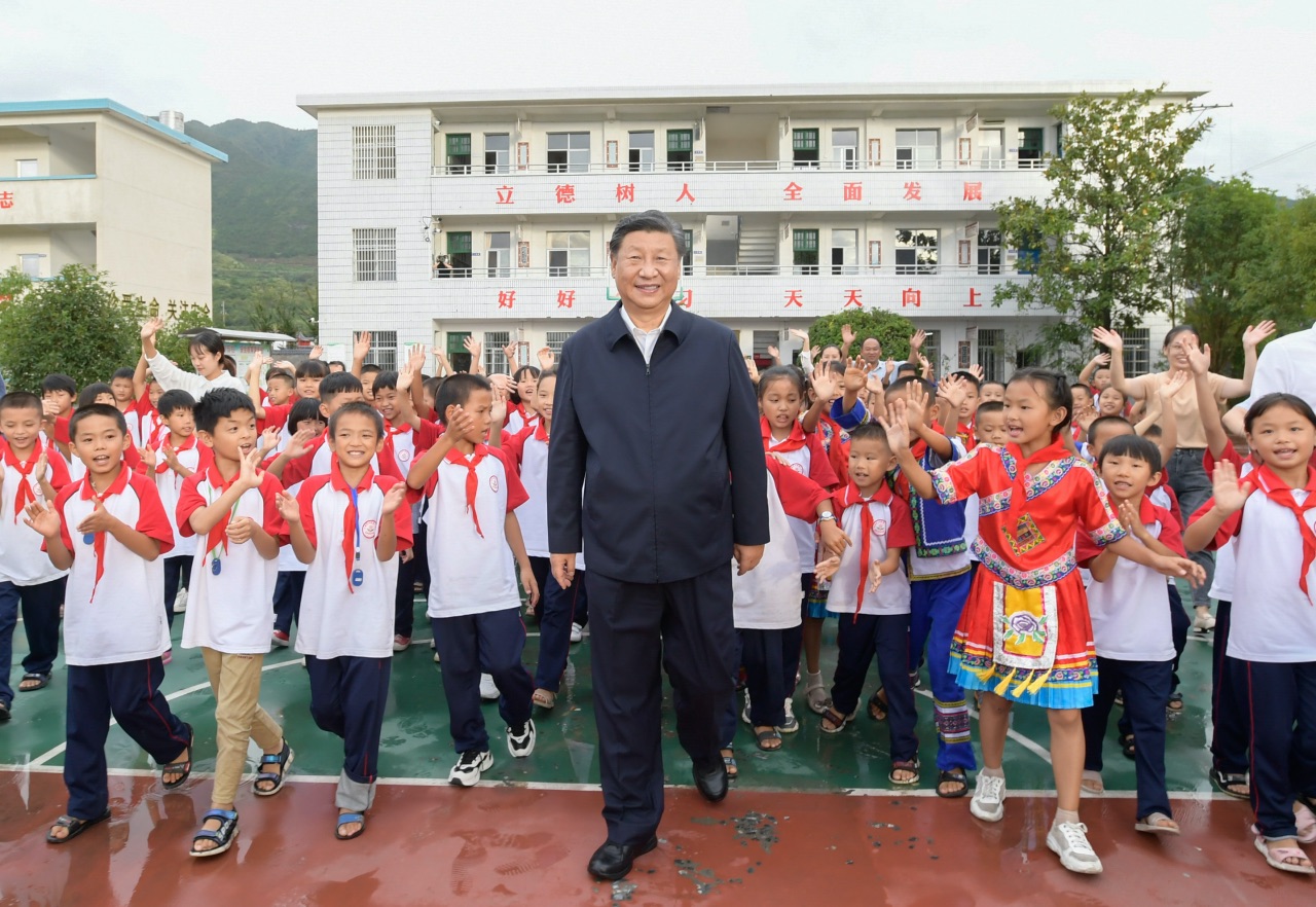 △9月16日下午,習(xí)近平走進湖南郴州市汝城縣文明瑤族鄉(xiāng)第一片小學(xué)。