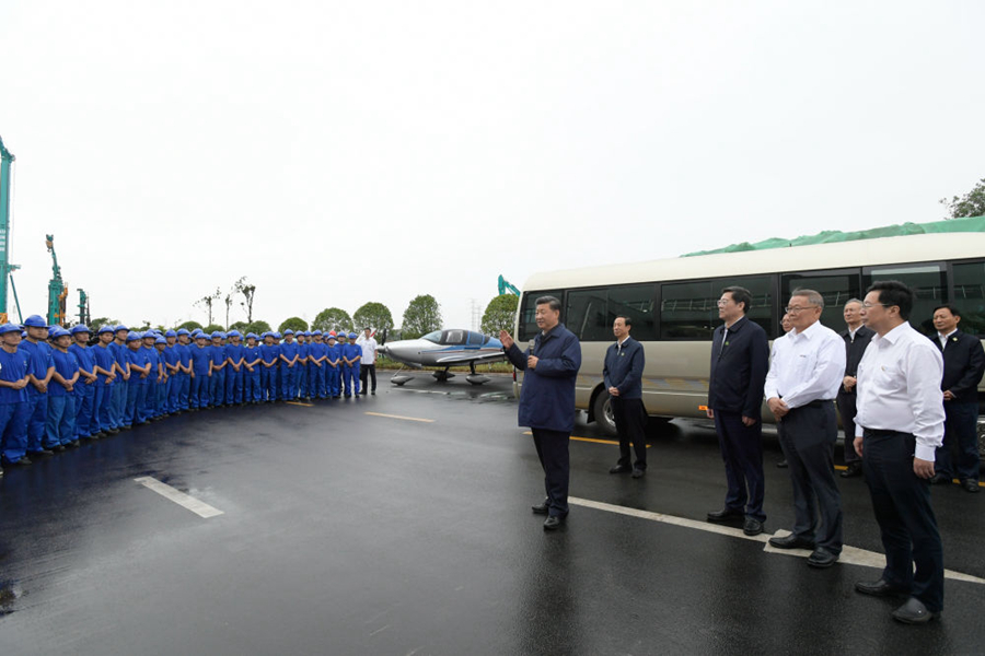 9月17日下午,習近平在長沙市山河智能裝備股份有限公司生產(chǎn)車間,察看裝備制造流程,了解技術(shù)研發(fā)、生產(chǎn)制造情況。(新華社記者李學仁 攝)