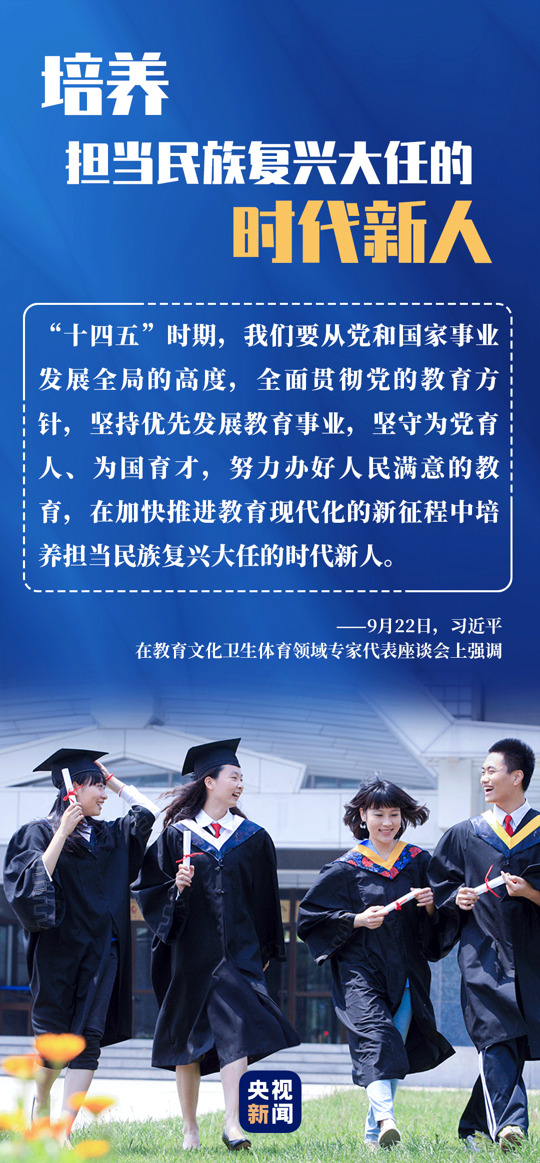 教育是國之大計、黨之大計。座談會上,習(xí)近平首先對“十四五”時期培養(yǎng)擔(dān)當(dāng)民族復(fù)興大任的時代新人提出了要求。