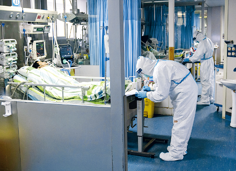在抗擊新冠肺炎疫情的戰(zhàn)役中,廣大醫(yī)務(wù)人員義無反顧、逆行出征,白衣執(zhí)甲、不負(fù)重托,詮釋了醫(yī)者仁心和大愛無疆。圖為2020年1月24日,在武漢大學(xué)中南醫(yī)院重癥隔離病房,醫(yī)務(wù)人員為病人治療。 新華社記者 熊琦/攝