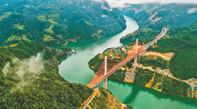 10月1日,貴州劍(河)榕(江)高速公路開通試運(yùn)營(yíng),實(shí)現(xiàn)全線通車。圖為當(dāng)日拍攝的劍榕高速清水江特大橋。