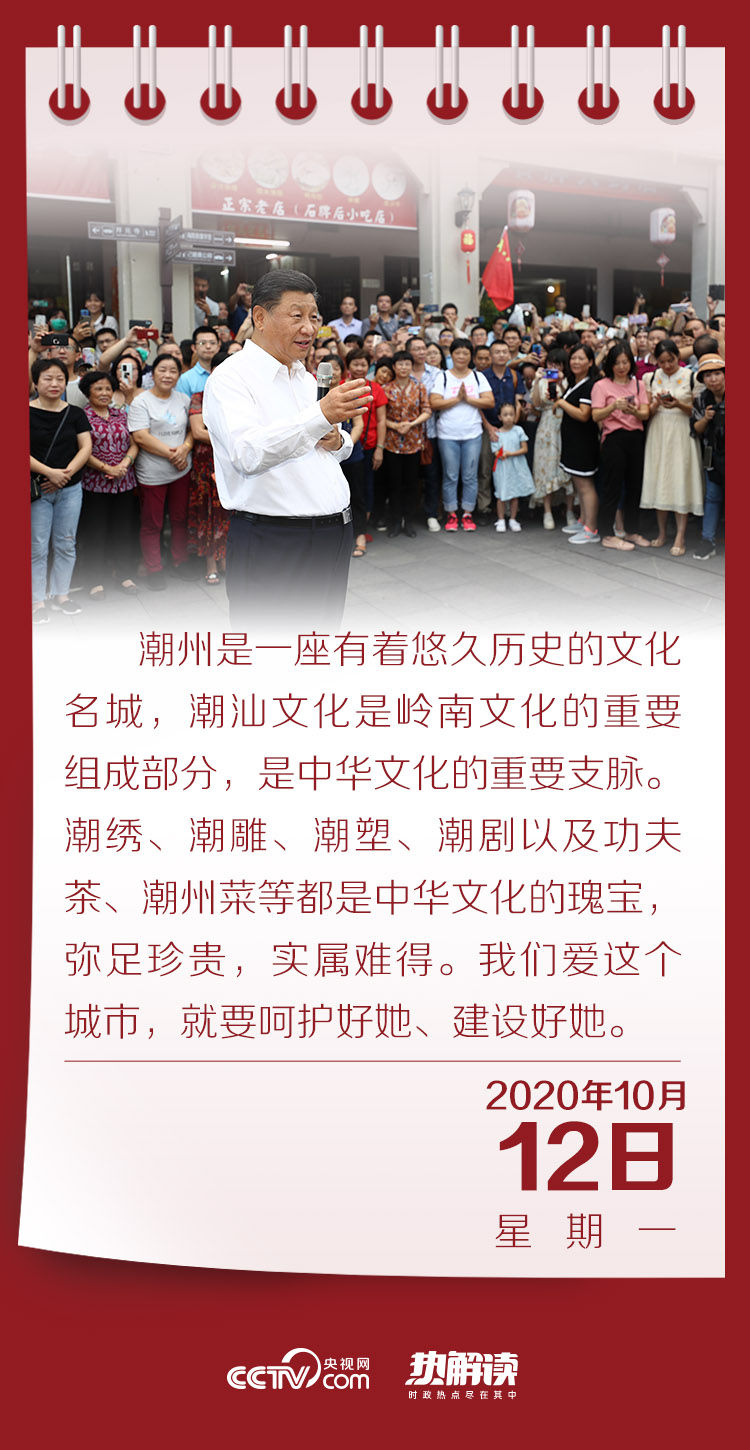 在潮州市牌坊街,習(xí)近平總書記如數(shù)家珍地點(diǎn)贊了潮繡、潮雕、潮塑、潮劇以及工夫茶、潮州菜等中華文化瑰寶,并表示:“潮州是一座有著悠久歷史的文化名城,潮汕文化是嶺南文化的重要組成部分,是中華文化的重要支脈!