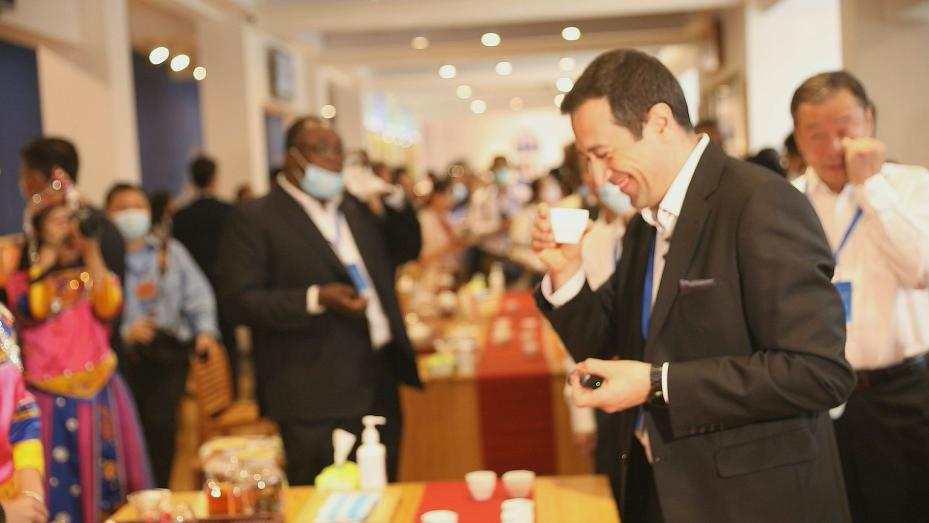△外國使節(jié)參觀畬村白茶體驗館、品嘗福鼎白茶