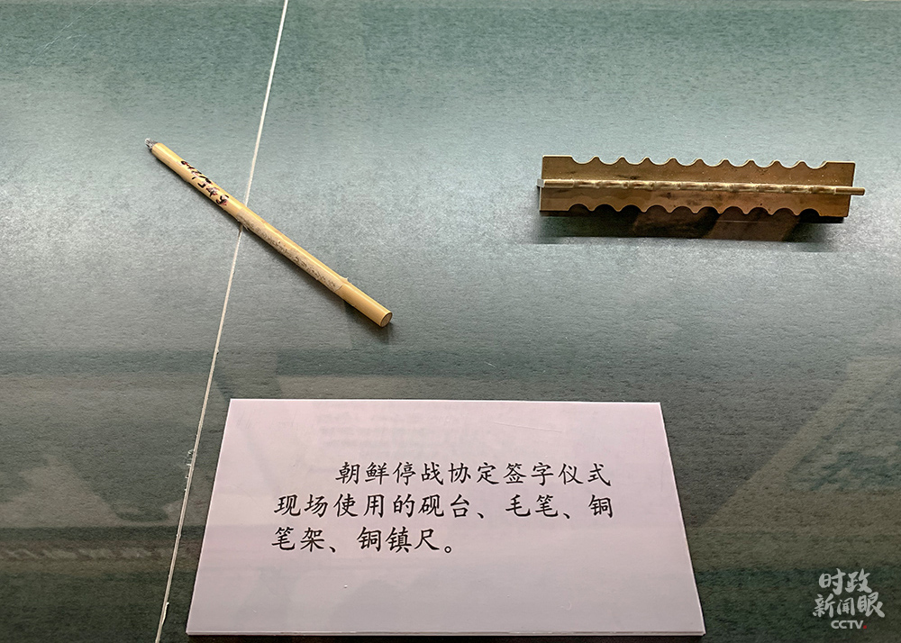 △朝鮮停戰(zhàn)協(xié)定簽字儀式現(xiàn)場(chǎng)使用的文具(總臺(tái)央視記者石丞拍攝)