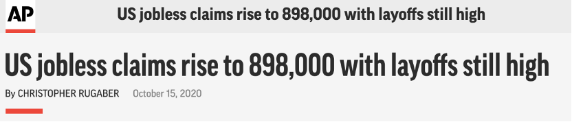 此外,美國白宮與美國國會就新一輪財政刺激措施進行的談判陷入僵局,也進一步打擊了失業(yè)者。