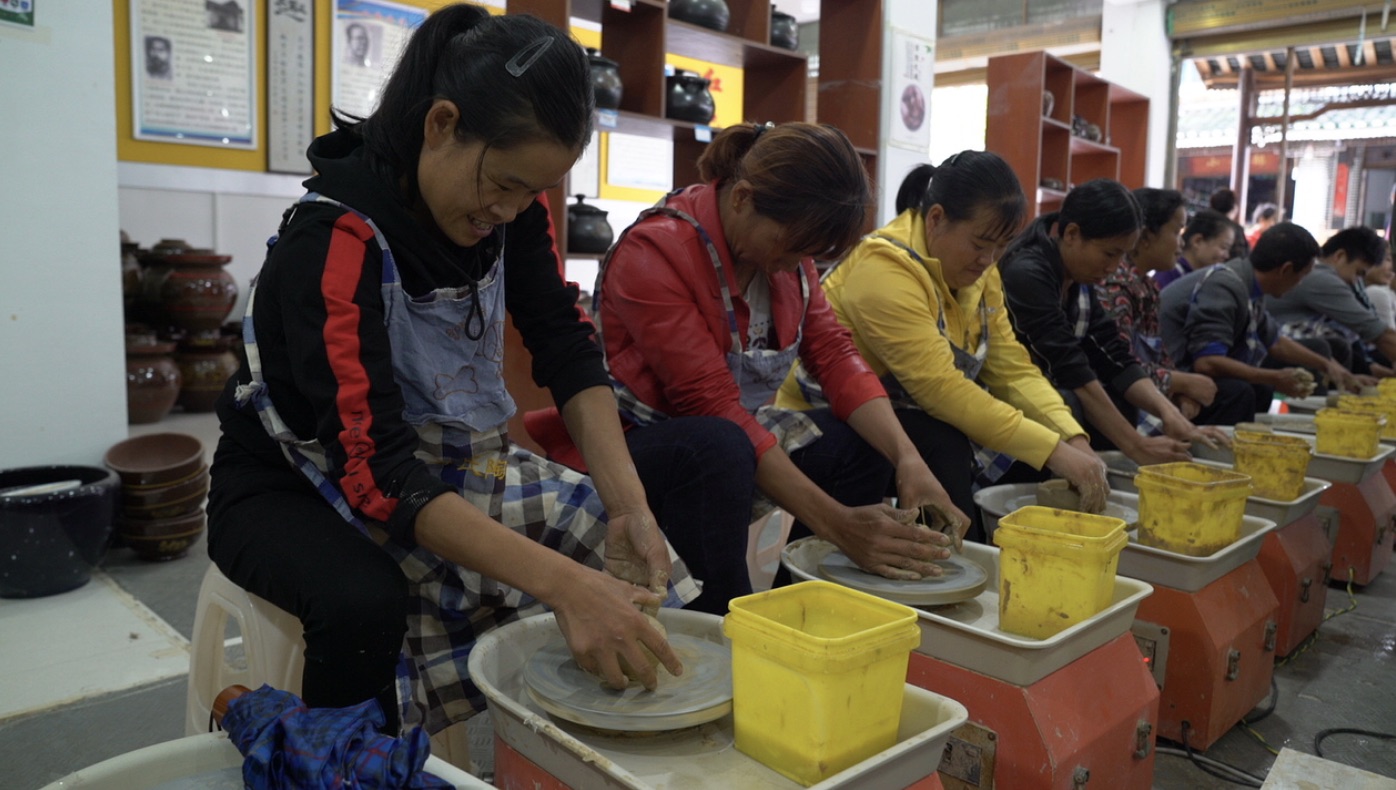 2014年,在政府幫扶下,母先才建造了陶藝館!皠偨ㄆ饋頃r,壓力特別大,因為建陶藝館一共花了差不多100萬,背了外債80萬,每天晚上都睡不著。好在政府給我辦了小微企業(yè)補助,還有貼息貸款等相關的政策支持,我們家陶藝館才很順利地建起來了。”