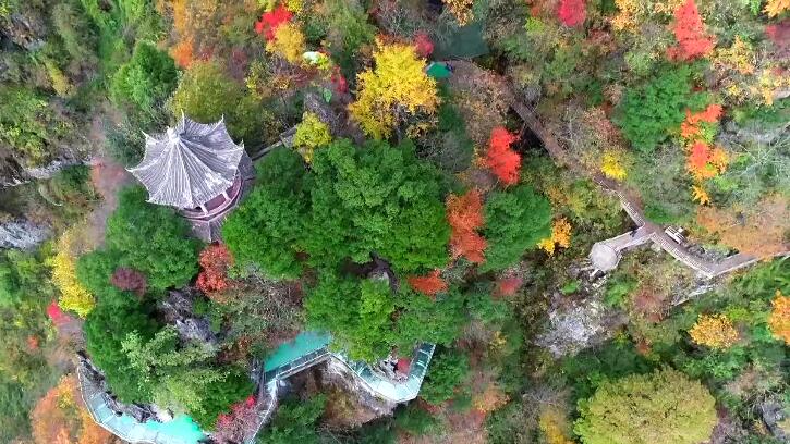 片片紅葉獨(dú)具奇特之美。奇石之上,丹楓似火,云海之中,紅葉如霞,行走在紅、黃、橙綠、紫的林海之間,滿目秋色皆自然。(總臺央視記者 耿曉斌 文豪)