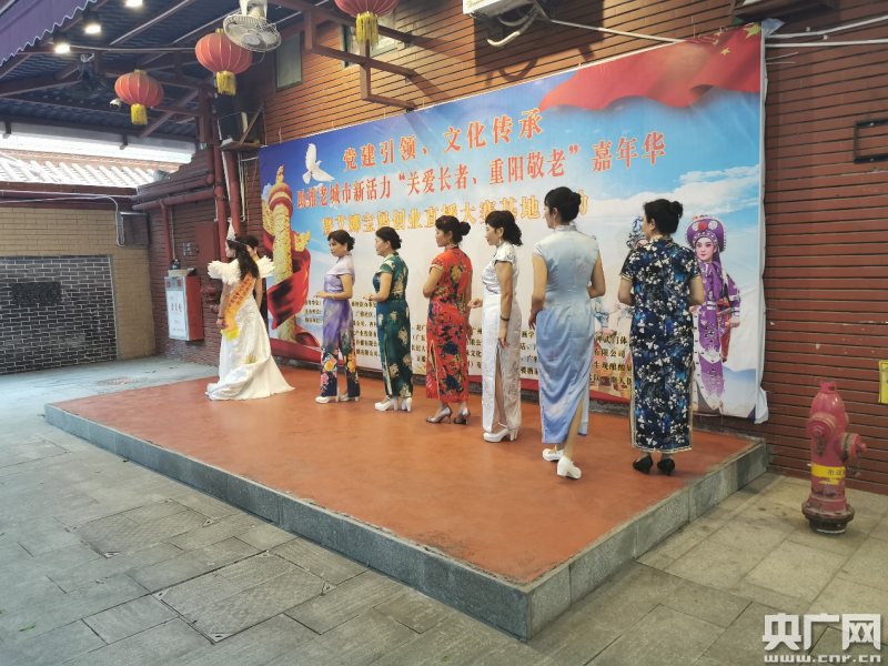 “關(guān)愛(ài)長(zhǎng)者 重陽(yáng)敬老”嘉年華活動(dòng),文藝志愿者們?yōu)殚L(zhǎng)者們表演旗袍秀(央廣記者 傅曉勤 攝)