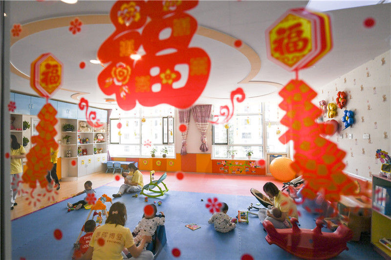 在內(nèi)蒙古呼和浩特市兒童福利院,教職工在陪伴兒童們玩耍(2019年5月28日攝)。新華社記者 王靖 攝