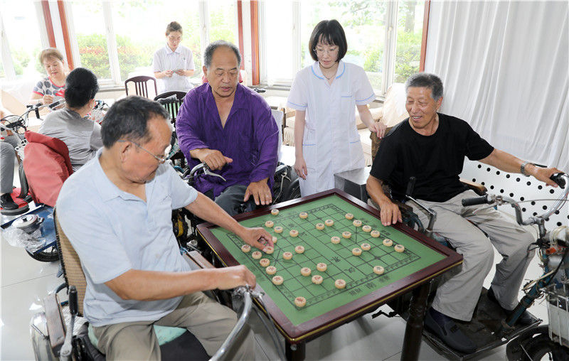 河北省唐山市截癱療養(yǎng)院的住院者在下棋(2019年7月25日攝)。新華社記者 趙鴻宇 攝