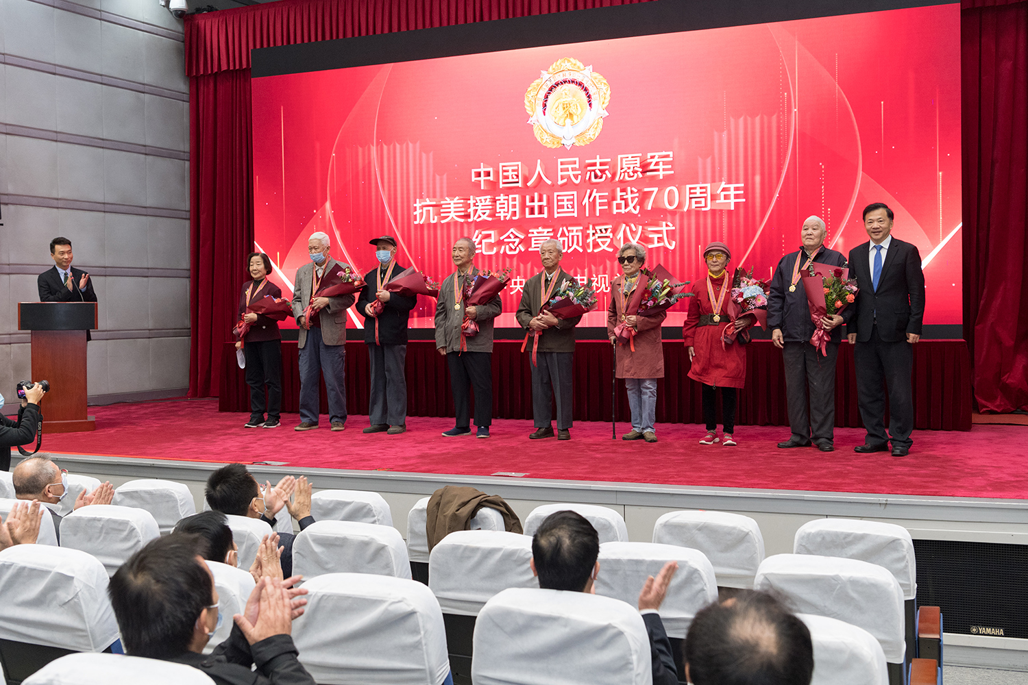 紀(jì)念章頒授儀式在雄壯豪邁的《中國(guó)人民志愿軍戰(zhàn)歌》歌聲中結(jié)束。
