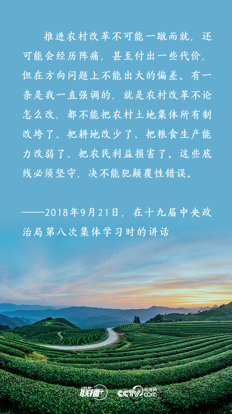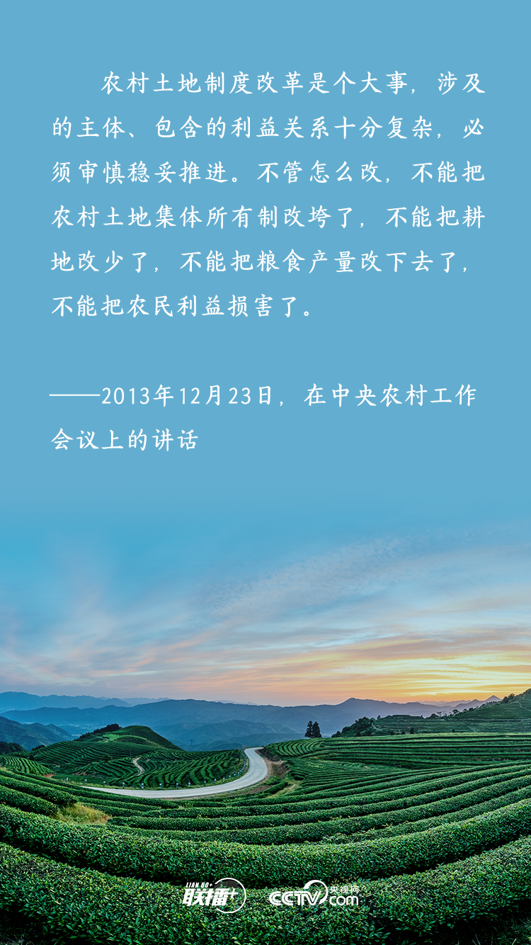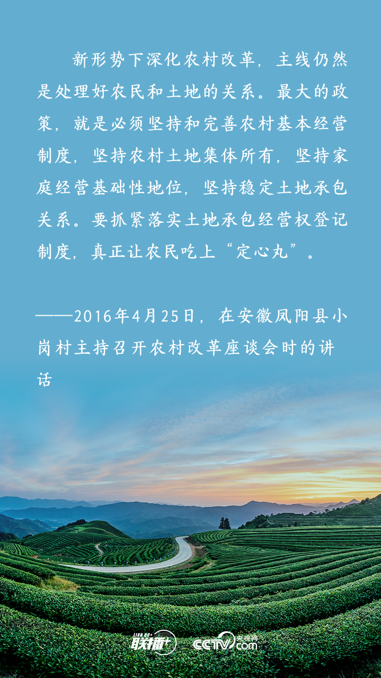 農(nóng)業(yè)農(nóng)村農(nóng)民問題是關(guān)系國計民生的根本性問題,農(nóng)村土地延包事關(guān)千家萬戶農(nóng)民切身利益,事關(guān)廣大農(nóng)村地區(qū)穩(wěn)定發(fā)展大計。黨的十八大以來,習(xí)近平總書記多次深入基層實(shí)地調(diào)研,召開多個重要會議,既從大處著眼,整體布局、謀定而動,又從小處入手,順勢而為、層層推進(jìn),為新時代推進(jìn)農(nóng)村土地制度改革、做好農(nóng)村承包地管理工作擘畫發(fā)展路徑。央視網(wǎng)《聯(lián)播+》特梳理,與您一起學(xué)習(xí)。