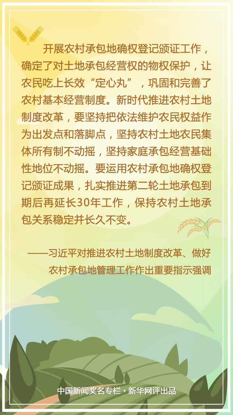 農(nóng),天下之大業(yè)也。新時代推進農(nóng)村土地制度改革、做好農(nóng)村承包地管理工作,進一步鞏固和完善農(nóng)村基本經(jīng)營制度,保障農(nóng)民的土地承包權(quán)益,是安民固本之舉,意義重大,影響深遠。