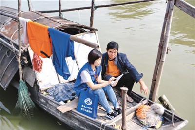 11月5日,在廣東省鶴山市,人口普查員走進(jìn)谷埠水上漁村,為漁民采集、登記、錄入人口相關(guān)信息。