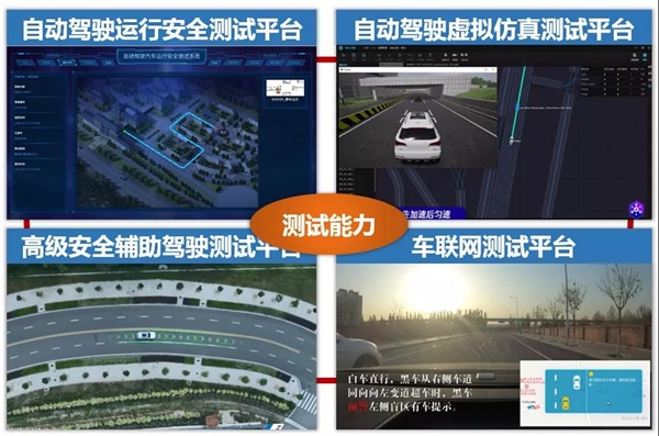 為解決無人駕駛遇到的真實問題,基地搭建了四個研究平臺,分別是自動駕駛運行安全測試平臺、自動駕駛虛擬仿真測試平臺、高級安全輔助駕駛測試平臺、車聯(lián)網(wǎng)測試平臺。