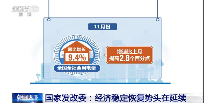 11月份,全國(guó)規(guī)模以上工業(yè)發(fā)電量同比增長(zhǎng)6.8%,增速比上月提高2.2個(gè)百分點(diǎn)。同時(shí),全國(guó)全社會(huì)用電量同比增長(zhǎng)9.4%,增速比上月提高2.8個(gè)百分點(diǎn)。在投資項(xiàng)目審批方面,11月份,國(guó)家發(fā)展改革委共審批核準(zhǔn)固定資產(chǎn)投資項(xiàng)目26個(gè),總投資3704億元,主要集中在交通、信息化和能源等領(lǐng)域。